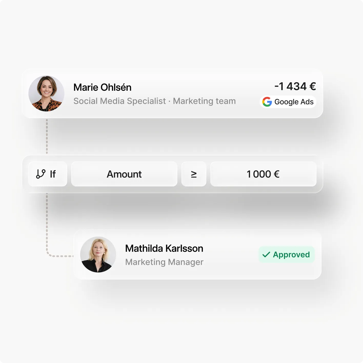 Varmista, että kaikki kulut noudattavat yrityksenne käytäntöjä Myntin hyväksymissäännöt-toiminnolla. Näin oikeat hankinnat hyväksytään oikean henkilön toimesta. Halusittepa sitten toteuttaa monivaiheisen hyväksymisprosessin tai hallita hyväksyntää summan tai ostopaikan perusteella, se on mahdollista Myntissä.